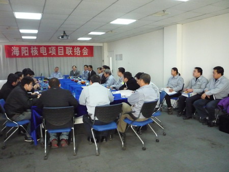 聯(lián)絡(luò)會(huì)主要是對我公司中標(biāo)海陽核電項(xiàng)目一期工程2*1000MW項(xiàng)目中的開閉試泵和循環(huán)水泵的有關(guān)文件進(jìn)行確認(rèn),以及進(jìn)度計(jì)劃等后續(xù)開始的建造工作進(jìn)行商議。