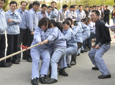 4月30日下午3:30,公司工會舉辦的“第四屆”慶五一拔河比賽正式開始。來自各基層分會的八支男隊、4支女隊共12支隊伍進行了比賽,比賽中隊員們充分發(fā)揮團隊意識,勁往一處使,隨著“加油、加油”的號子聲,你來我往,互不相讓。觀戰(zhàn)的員工比參賽隊員還著急,起勁的喊著“加油”,為隊員們吶喊、助威。場上氣氛熱烈,充分展現(xiàn)了荏原博泵員工勇于爭先,不甘落后的精神風貌。
