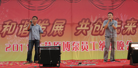 舞蹈《開門紅》寄托著荏原博泵員工對公司發(fā)展前景的美好期盼,展示了公司女職工的風(fēng)采。20多名復(fù)員軍人用一首《咱當(dāng)兵的人》抒發(fā)了他們保家衛(wèi)國、貢獻(xiàn)企業(yè)的豪情與壯志;研發(fā)部、技術(shù)部員工帶來的歌曲《跳起來》,展示了年輕人的青春與活力;質(zhì)量保證部員工在部長岳東海帶領(lǐng)下,演唱了歌曲《相親相愛一家人》,演繹著荏原博泵大家庭的親情、友情。友情樂隊帶來的動感十足的歌曲,更是將晚會的氣氛烘托到高潮。